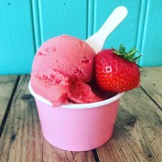 The farm has a wonderful machine which takes in tubbed Mackie’s vanilla, mixes it with a fruit of choice and tuns out a stream of lightly whipped wonder into either a tub or cone. It is so lovely to see each bespoke order being created right in front of the customer. I know some people who dislike strawberry ice cream but my instinct is that their hatred comes from the days of synthetic-tasting Neapolitan in a box. This is so very different as it actually tastes of strawberries and not just chemically enhanced flavouring. We loved it.