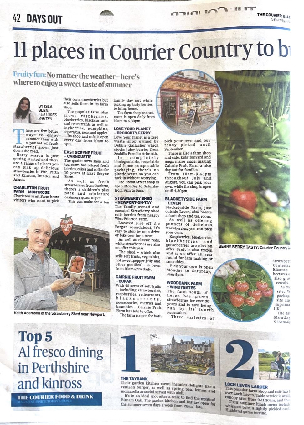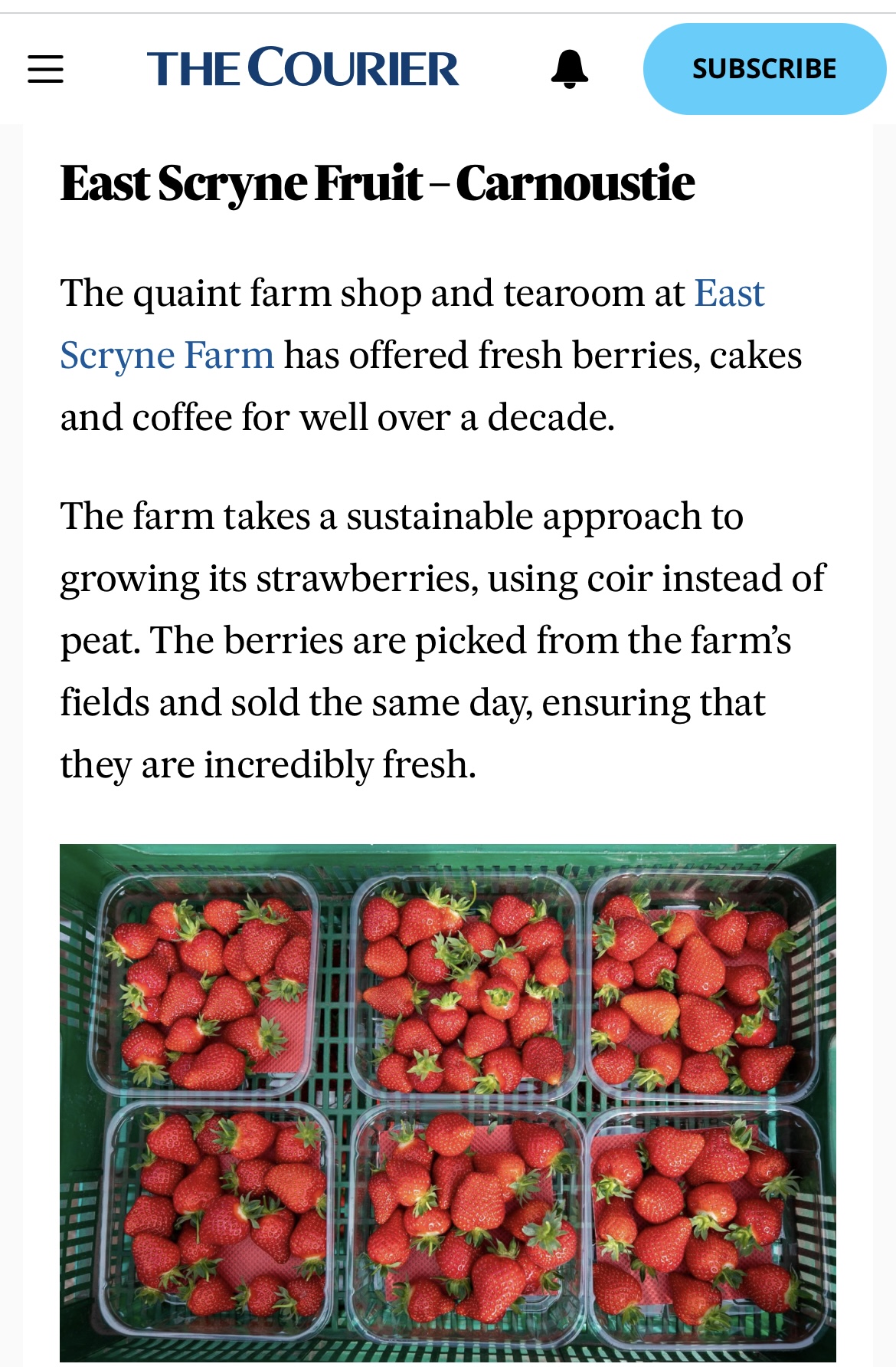 Weโre thrilled to be included in the Courierโs Berry Trail each year, which features Angus farms and growers. Weโre thought to be the areas oldest soft fruit farm shop in the area and 2025 saw us expanding further with changes to the playpark, car park and new pedestrianised areas.