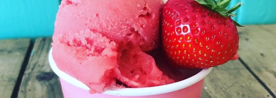The farm has a wonderful machine which takes in tubbed Mackie’s vanilla, mixes it with a fruit of choice and tuns out a stream of lightly whipped wonder into either a tub or cone. It is so lovely to see each bespoke order being created right in front of the customer. I know some people who dislike strawberry ice cream but my instinct is that their hatred comes from the days of synthetic-tasting Neapolitan in a box. This is so very different as it actually tastes of strawberries and not just chemically enhanced flavouring. We loved it.
